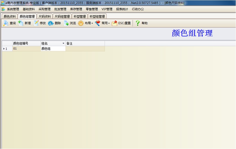 1、内衣颜色、尺码、杯型属性资料的建立